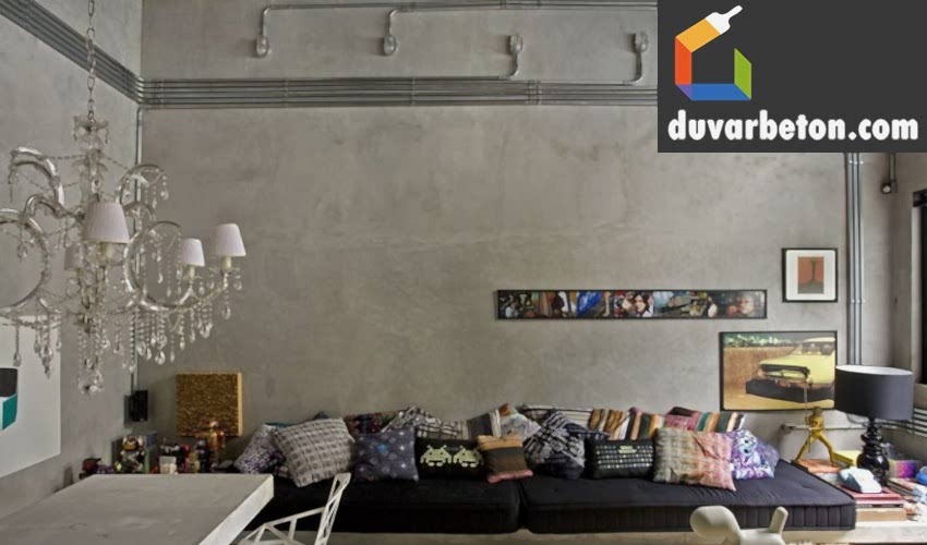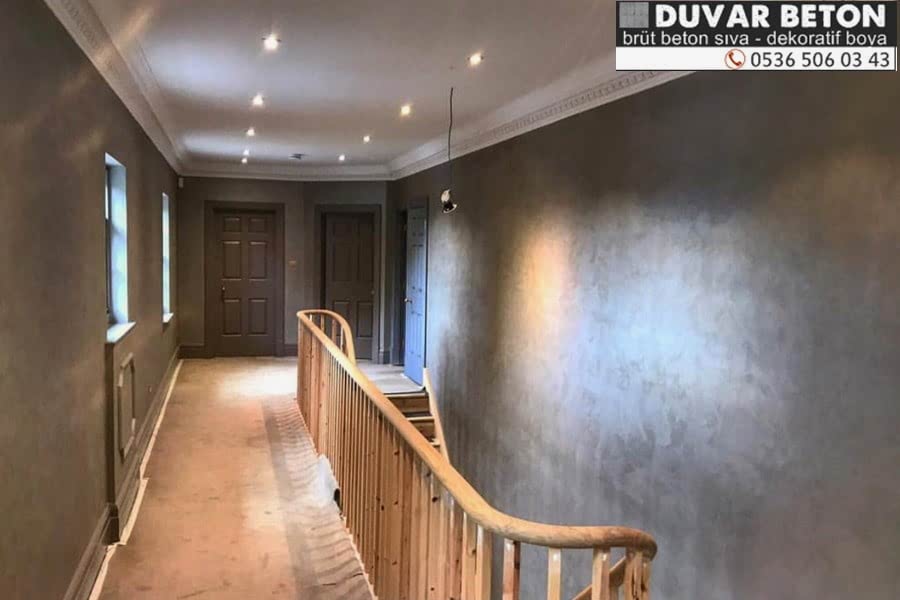 beton renkli sıva duvar dekorasyonu